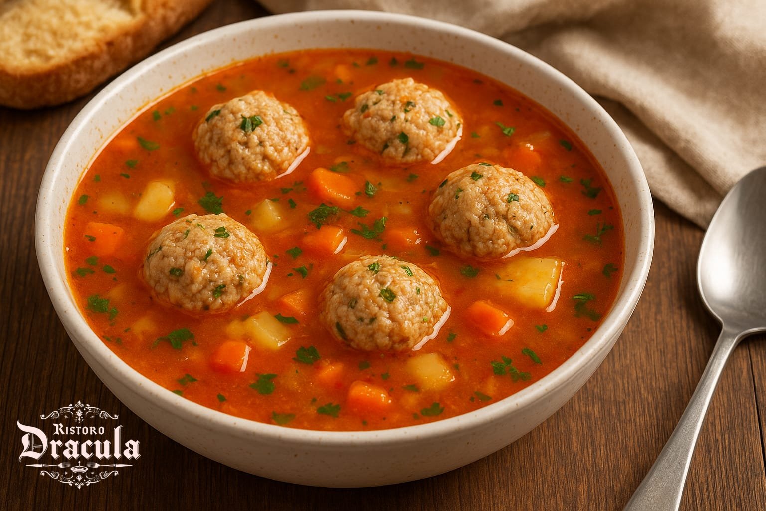 Zuppa con polpette compreso di pane